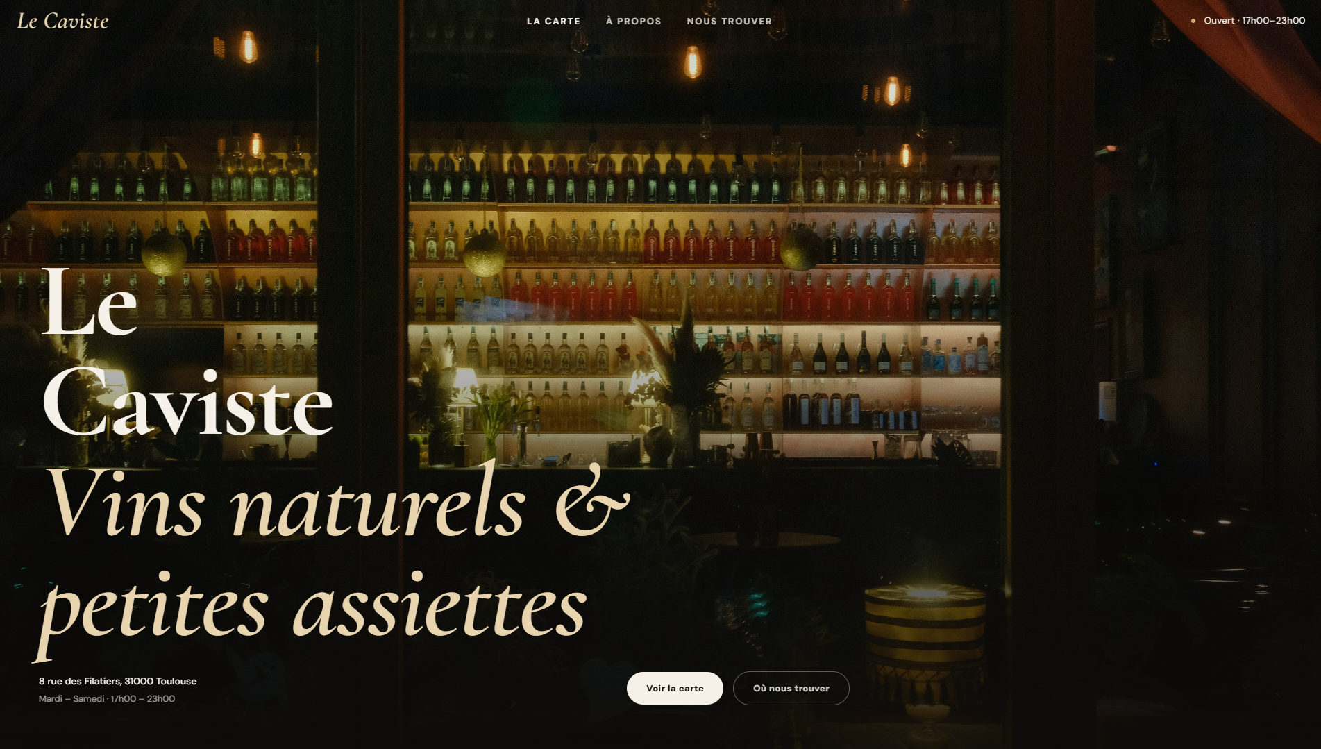 Un site vitrine pour une cave à vin, pensé pour présenter ses sélections, ses bouteilles de vin et son histoire.